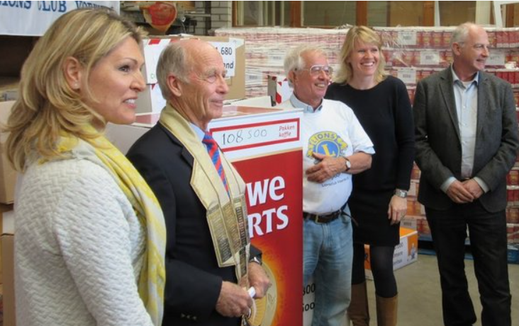 Een kop koffie is voor ruim een miljoen Nederlanders die onder de armoedegrens leven, een product dat een flinke hap uit het beschikbare budget neemt. Ook voor de klanten van de voedselbanken in Nederland is een dagelijks bakje koffie dus niet vanzelfsprekend. Daarom zamelt Lionsclubs Nederland al 10 jaar lang door het hele land waardepunten van Douwe Egberts in, om deze te verzilveren tegen D.E Aroma Rood pakken koffie. De koffiefabrikant verhoogt de opbrengst altijd met 20%. In dit 10-jarig jubileumjaar kon Jaap Stelling van Lionsclubs Nederland in het Regionaal Distributiecentrum Haaglanden 188.000 pakken koffie overhandigen aan René Froger als ambassadeur van Voedselbanken Nederland.